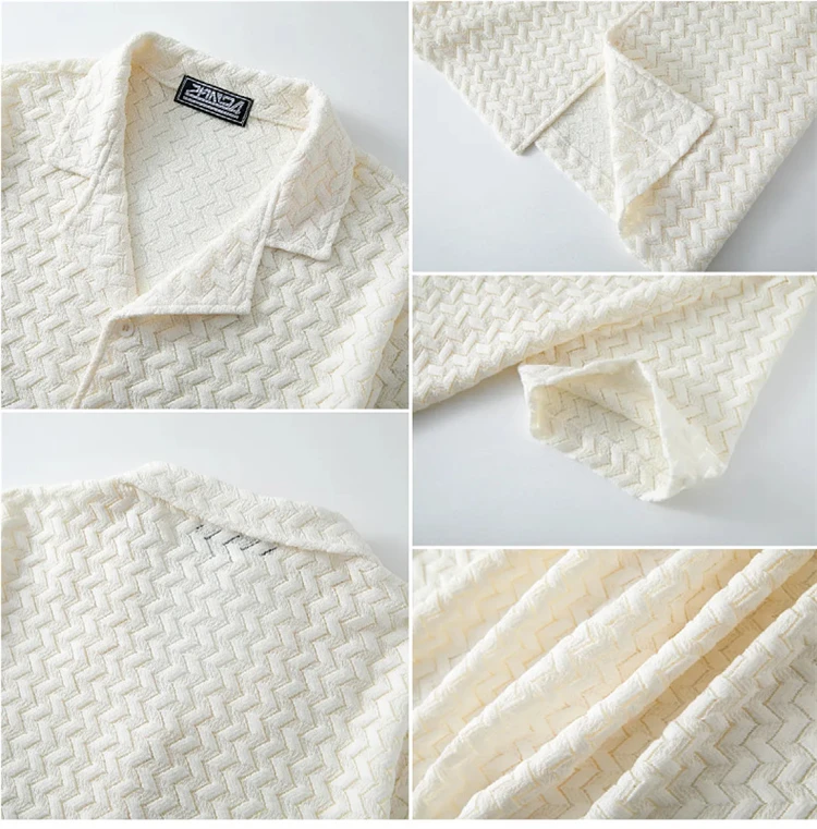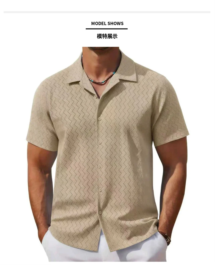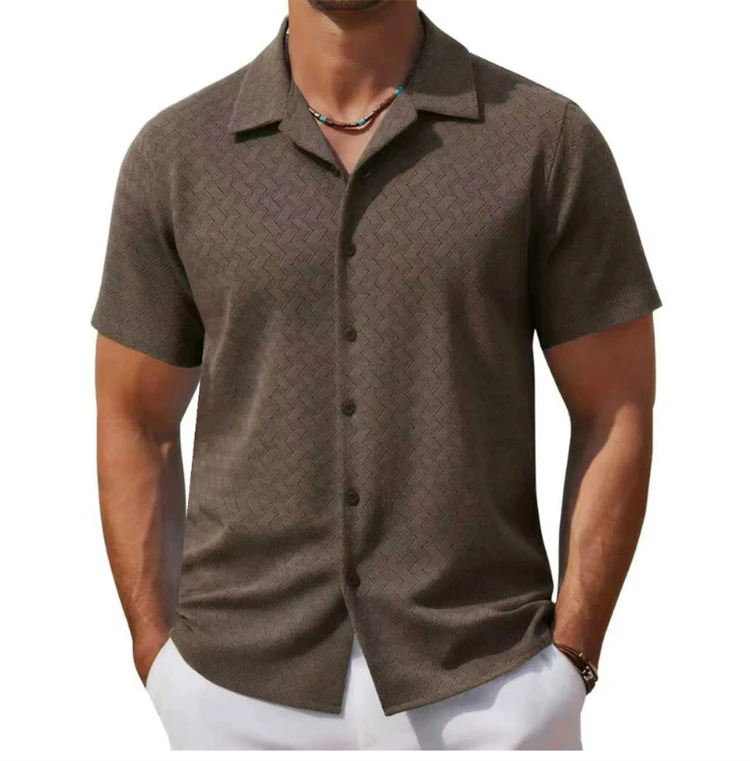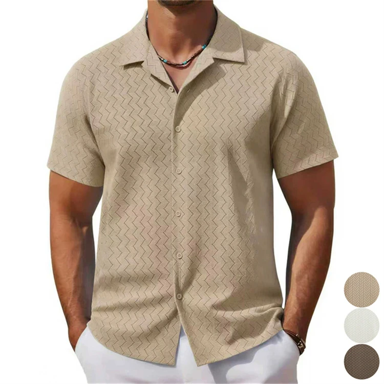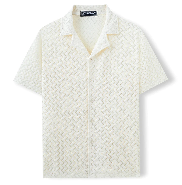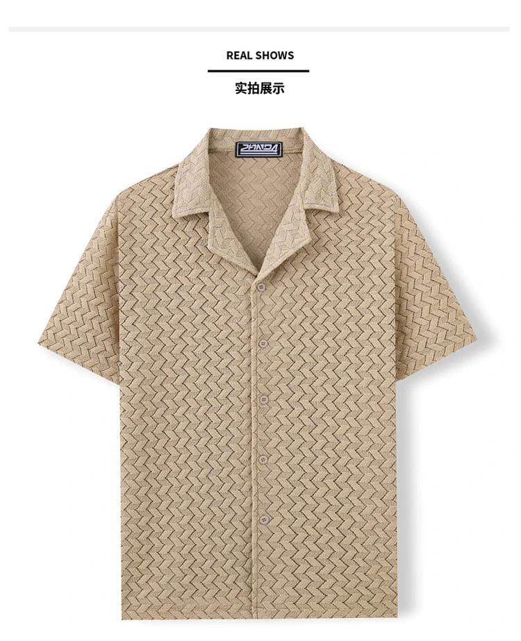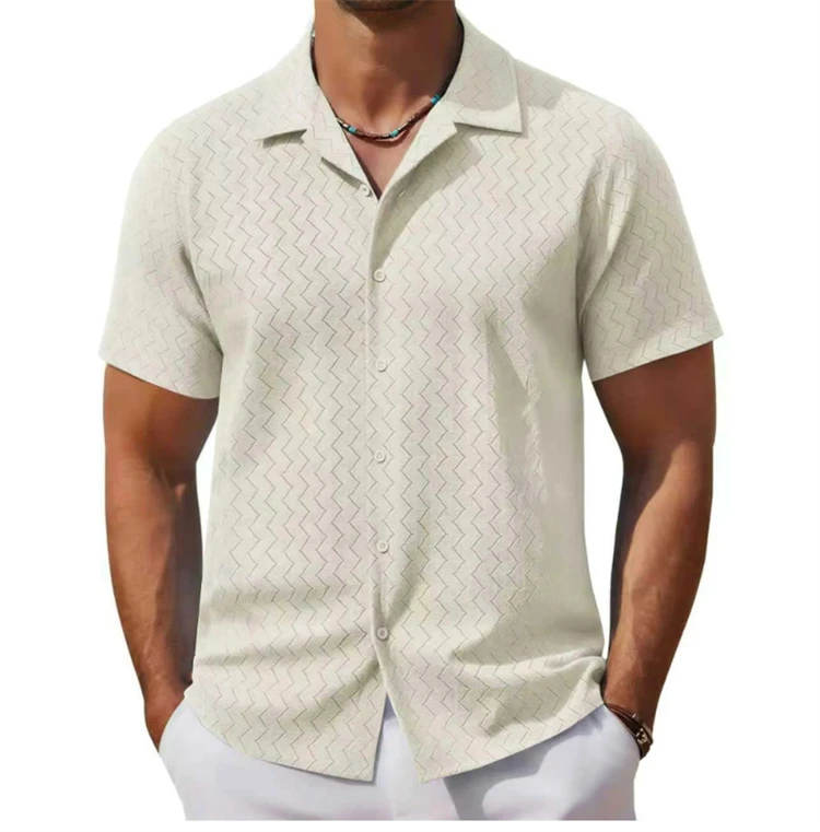 قمصان محبوكة بياقة كوبية للرجال بأكمام قصيرة مجوفة فضفاضة تناسب الصيف جودة بوليستر وألياف لدنة قابلة للتنفس Camisas De Hombre